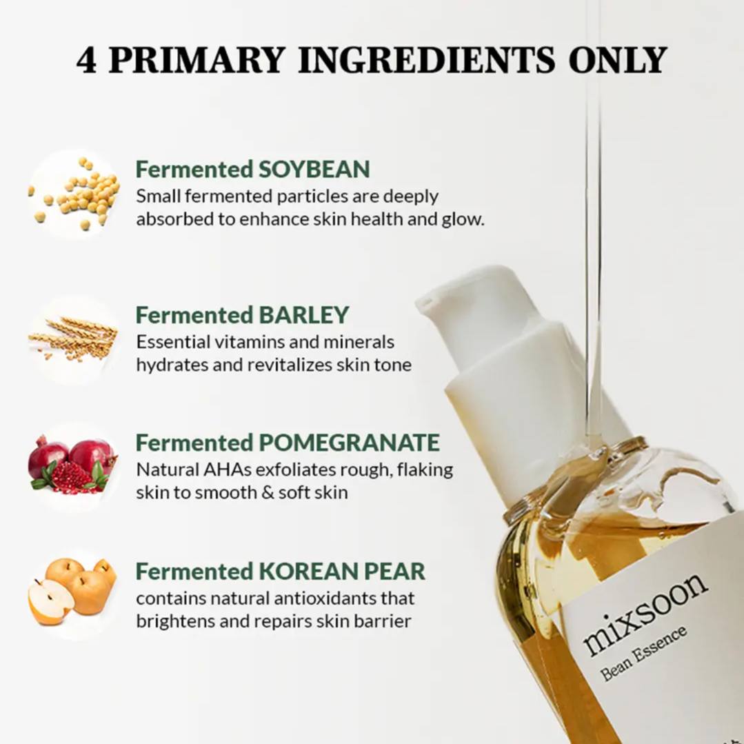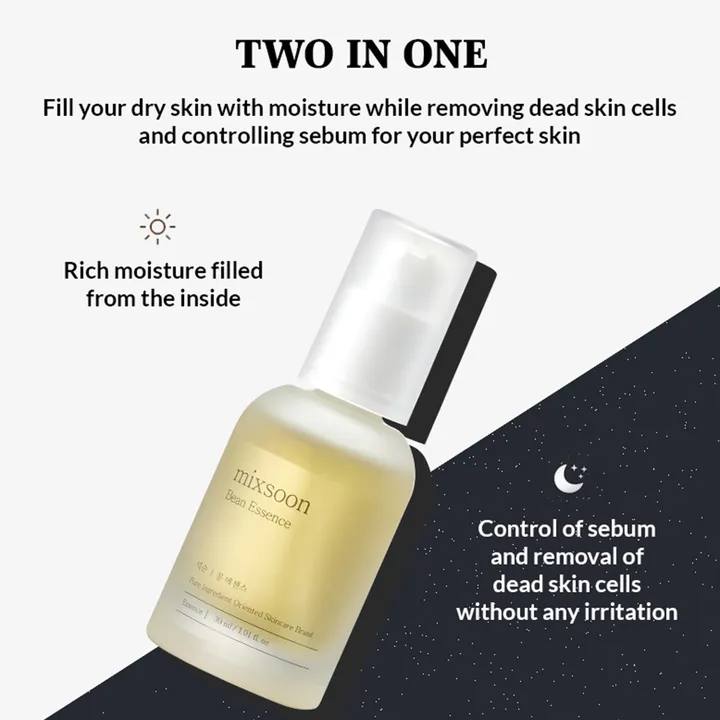 اسنس بخلاصة الفاصوليا لترطيب البشرة وتقشيرها بشكل خفيف ولطيف دون تهيج البشرة يقوي حاجز البشرة ويرطبها يوفر مضادات اكسدة طبيعية بفيتامين هاء